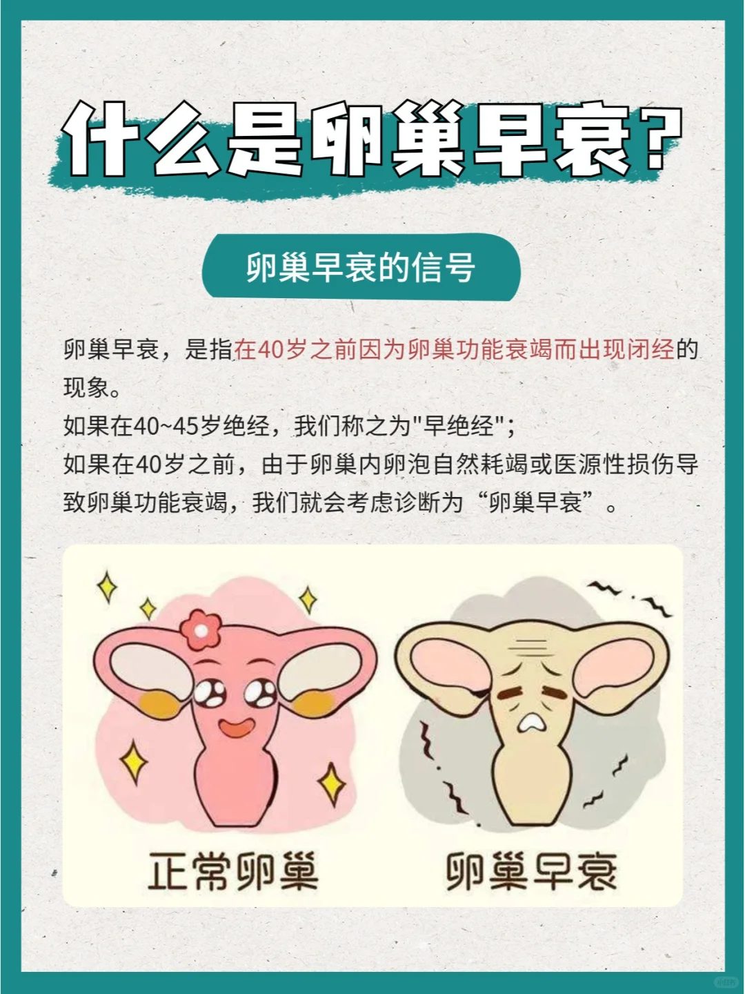 【什么是卵巢早衰?】卵巢早衰,是指在40岁之前因为卵巢功能衰...